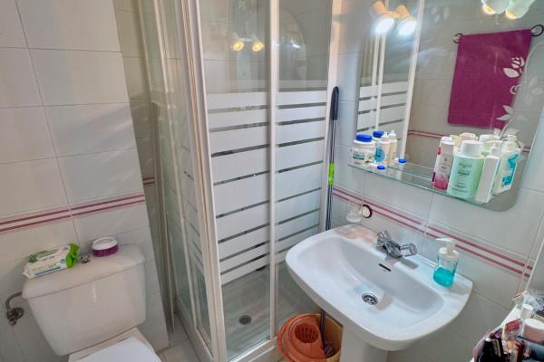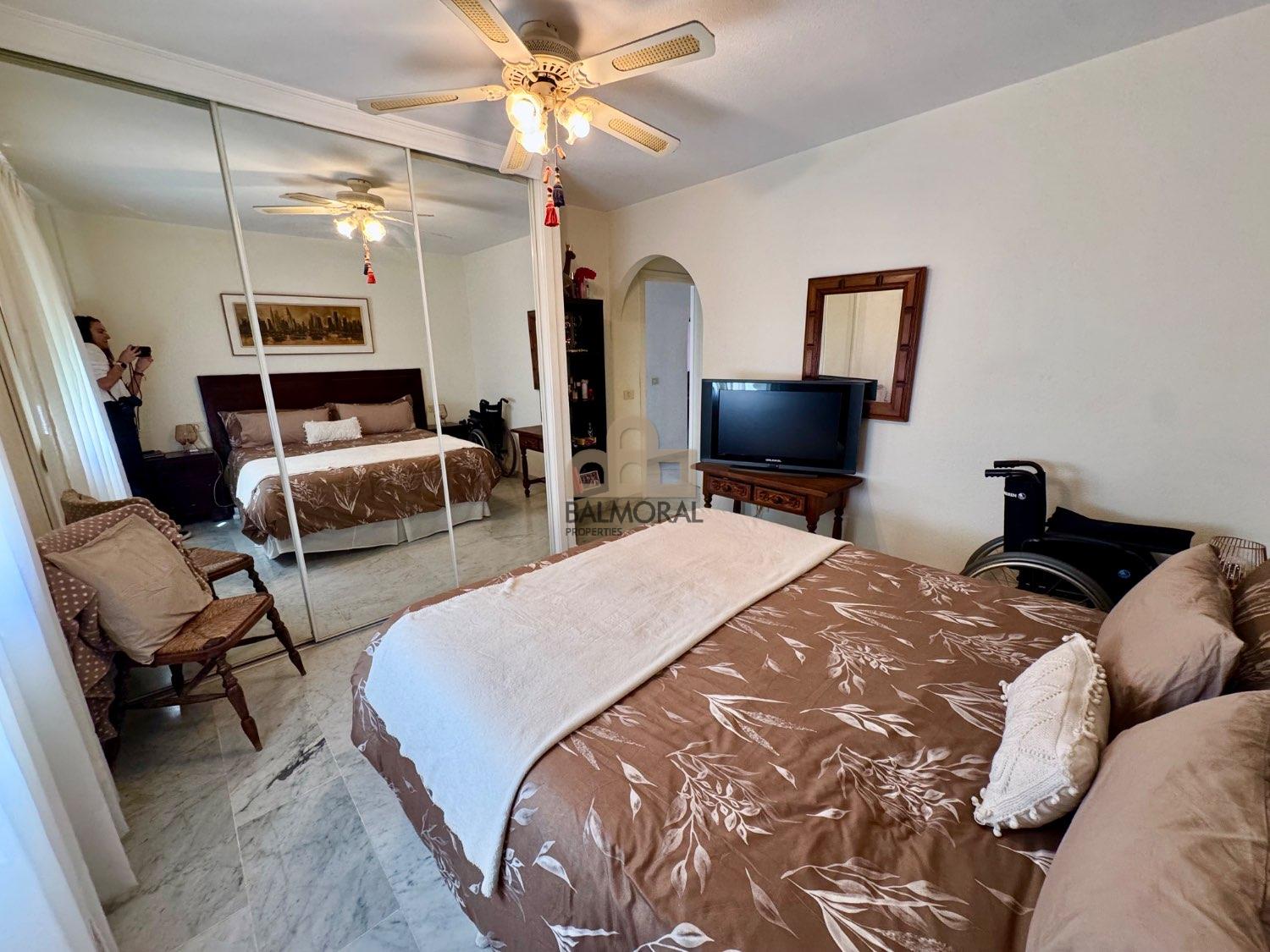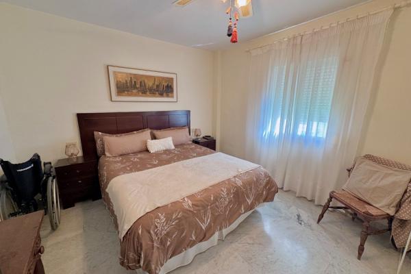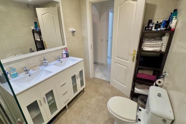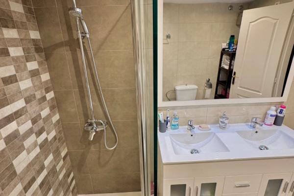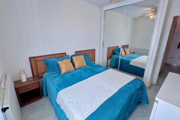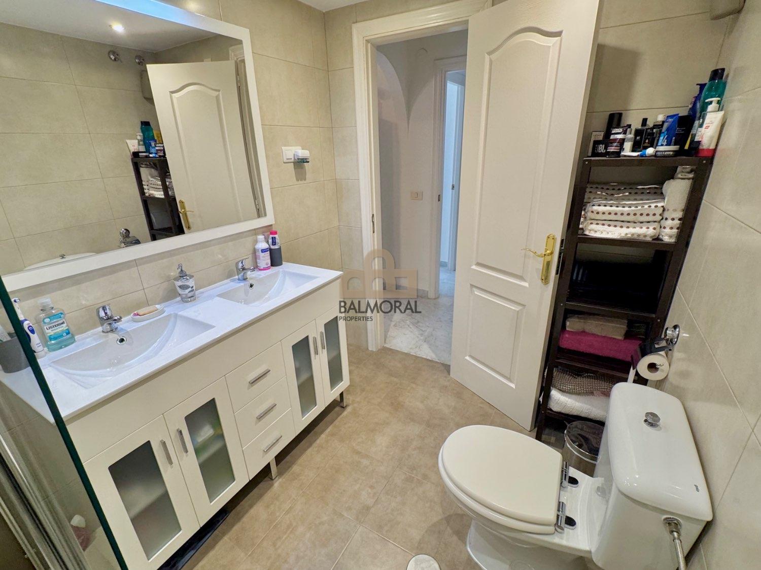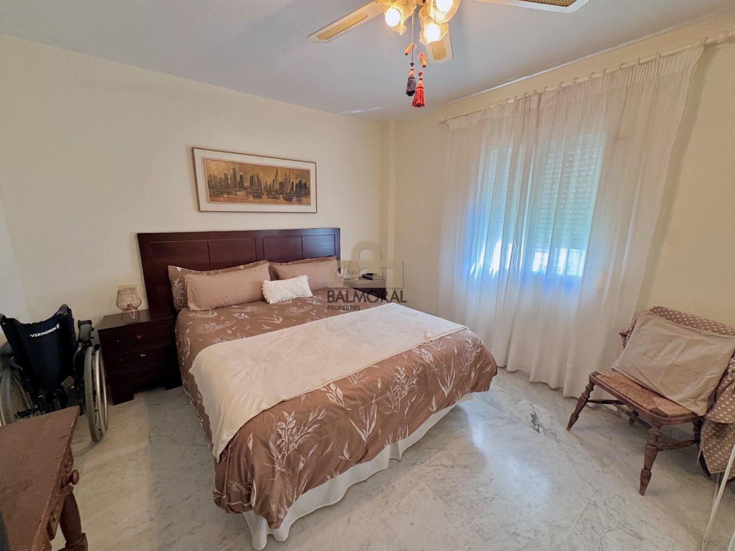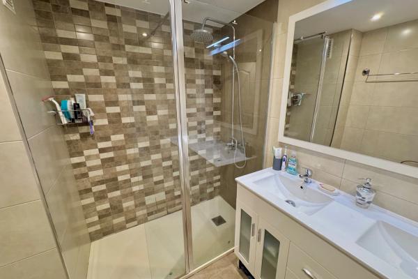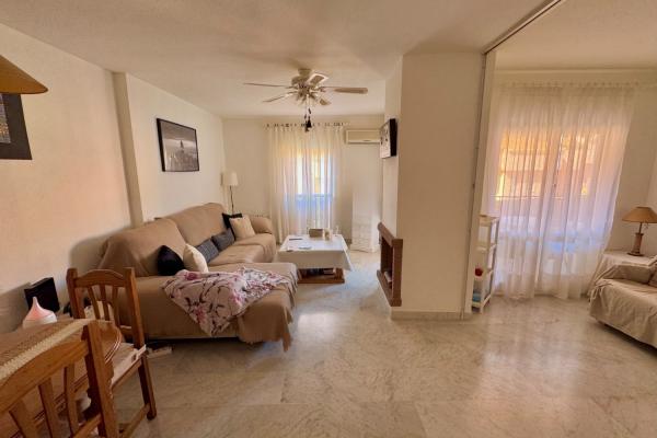 El piso cuenta con tres dormitorios, uno de ellos ingeniosamente integrado al salón mediante un biombo, lo que proporciona un espacio versátil y acogedor. Además, dispone de dos baños completos, ideales para mayor comodidad. Los armarios empotrados ofrecen un amplio espacio de almacenamiento, manteniendo todo ordenado y al alcance.