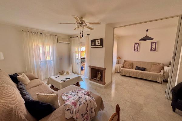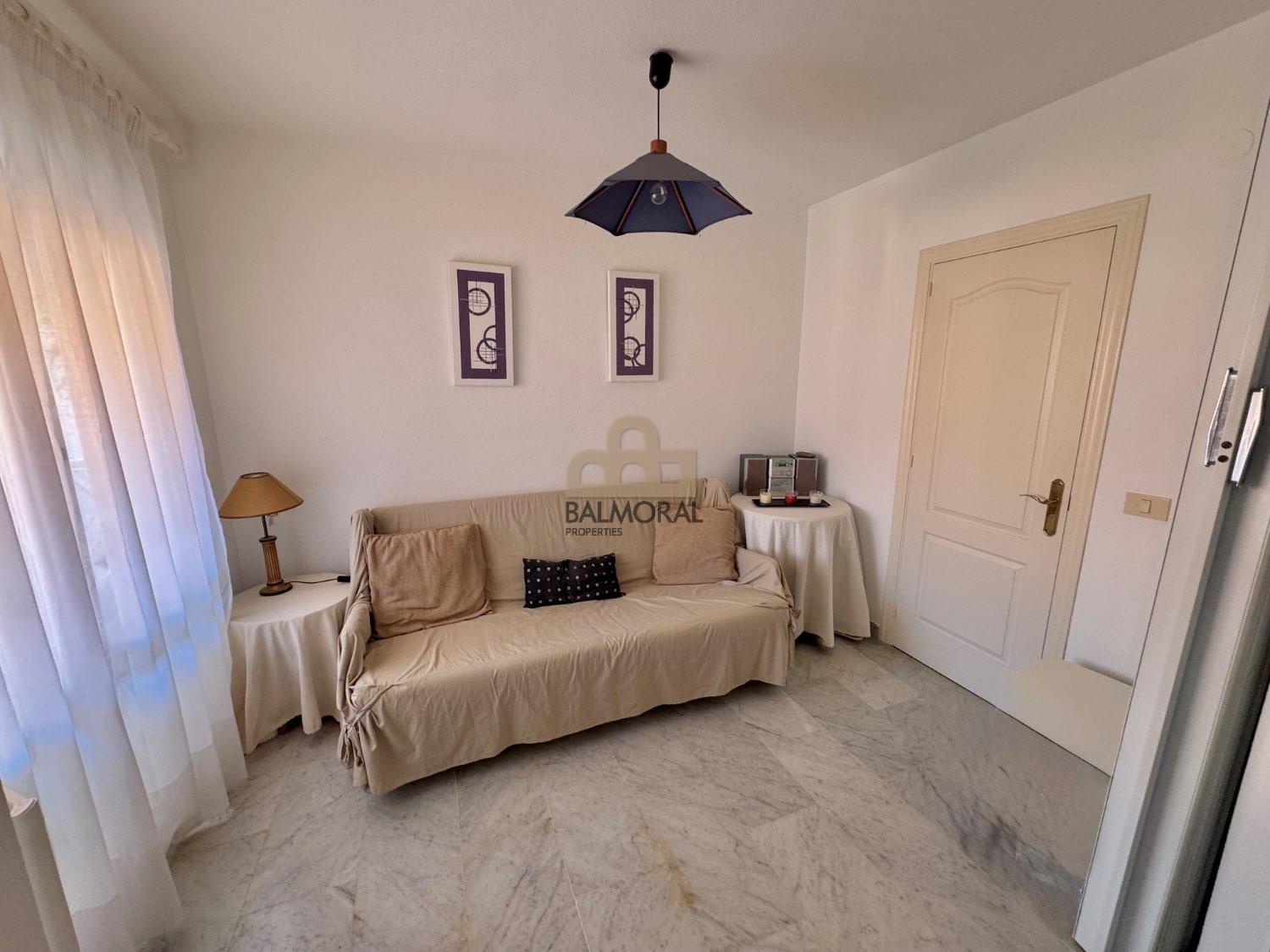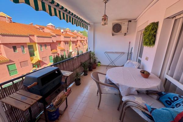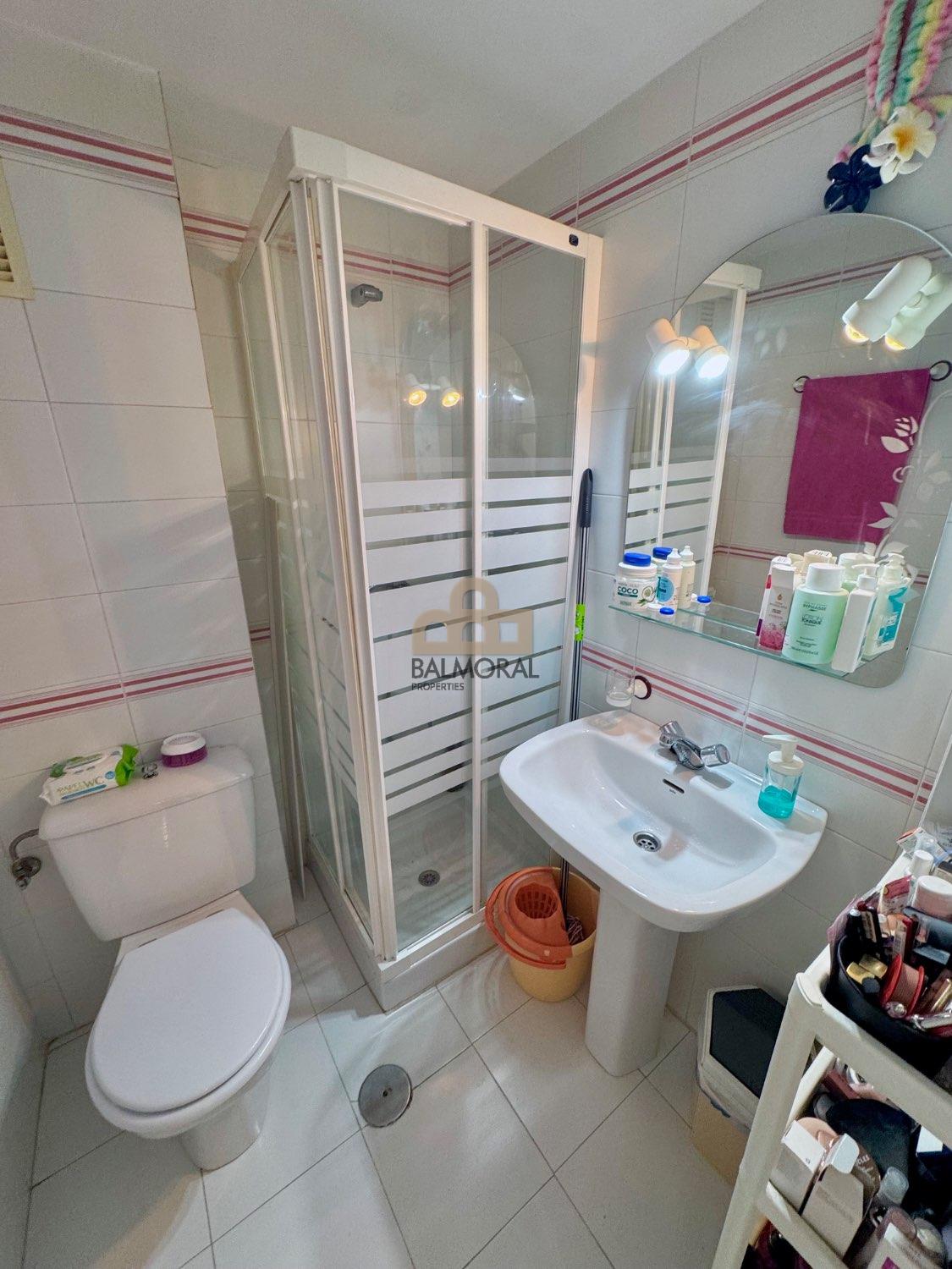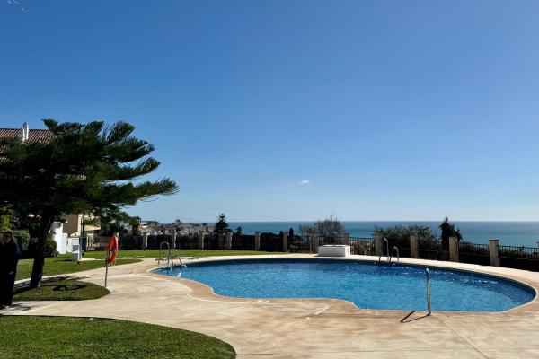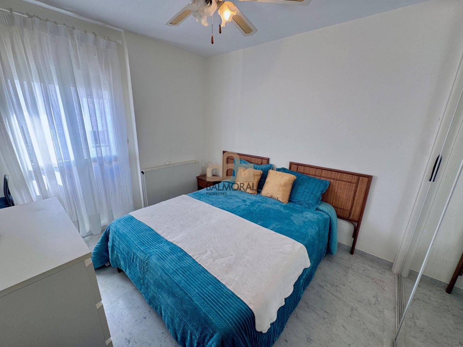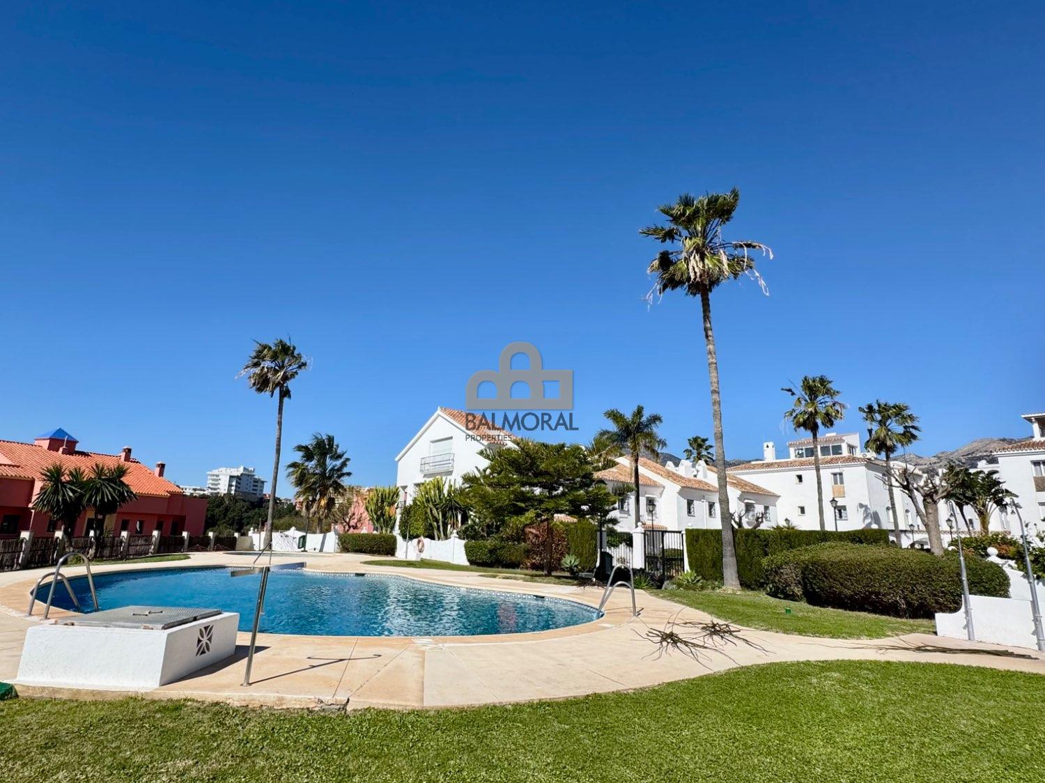 La urbanización destaca por sus hermosos jardines y su piscina con vistas a la costa, perfectos para disfrutar en los días soleados. Situado en una primera planta exterior con ascensor y orientación oeste, este piso garantiza luminosidad durante todo el día. Aunque no cuenta con calefacción, el aire acondicionado asegura un ambiente fresco en verano.